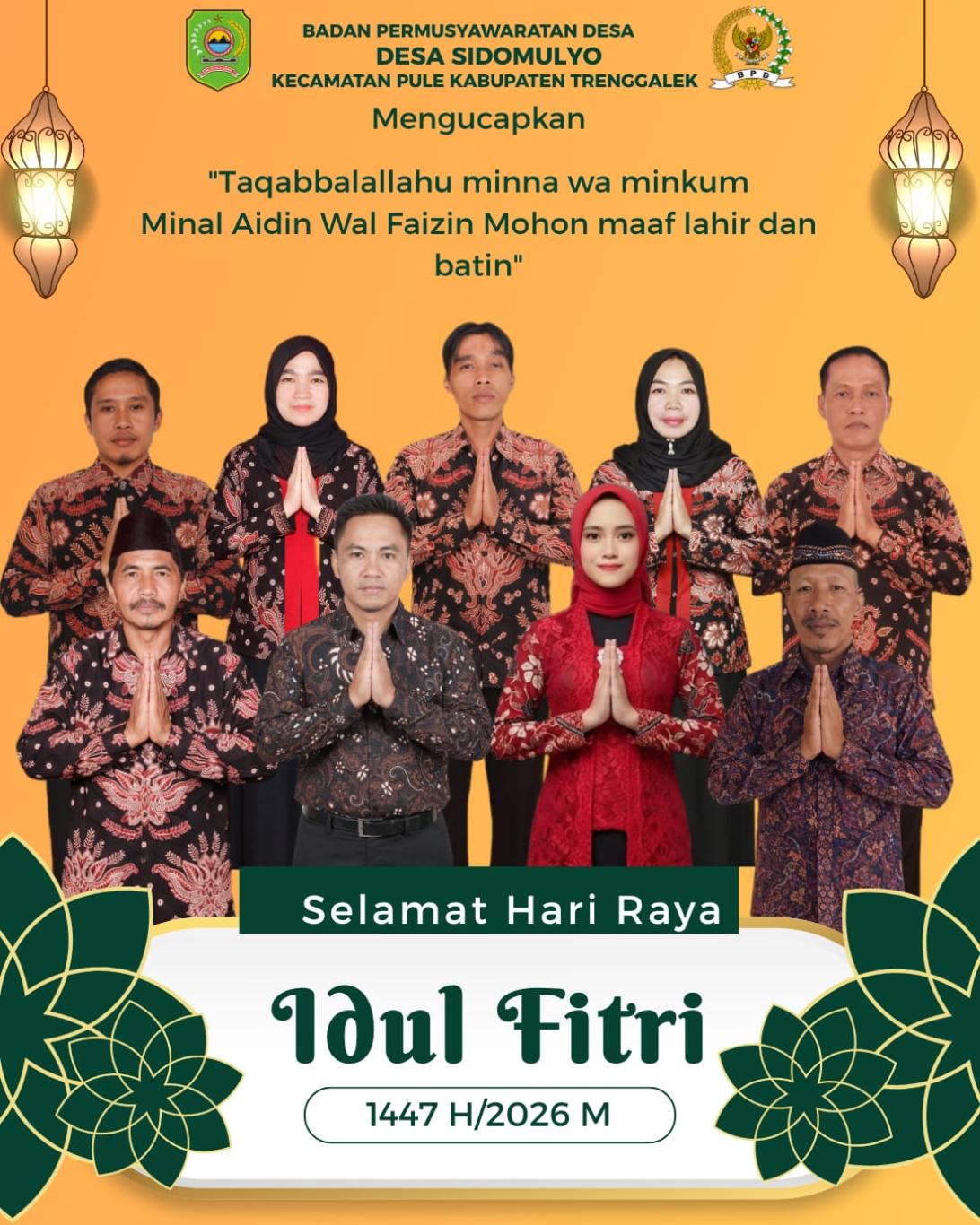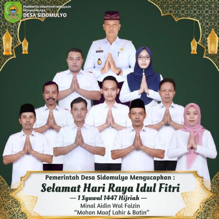 kami segenap keluarga besar Pemerintah Desa sidomulyo mengucapkan minal aidin wal faizin, mohon maaf lahir dan batin.